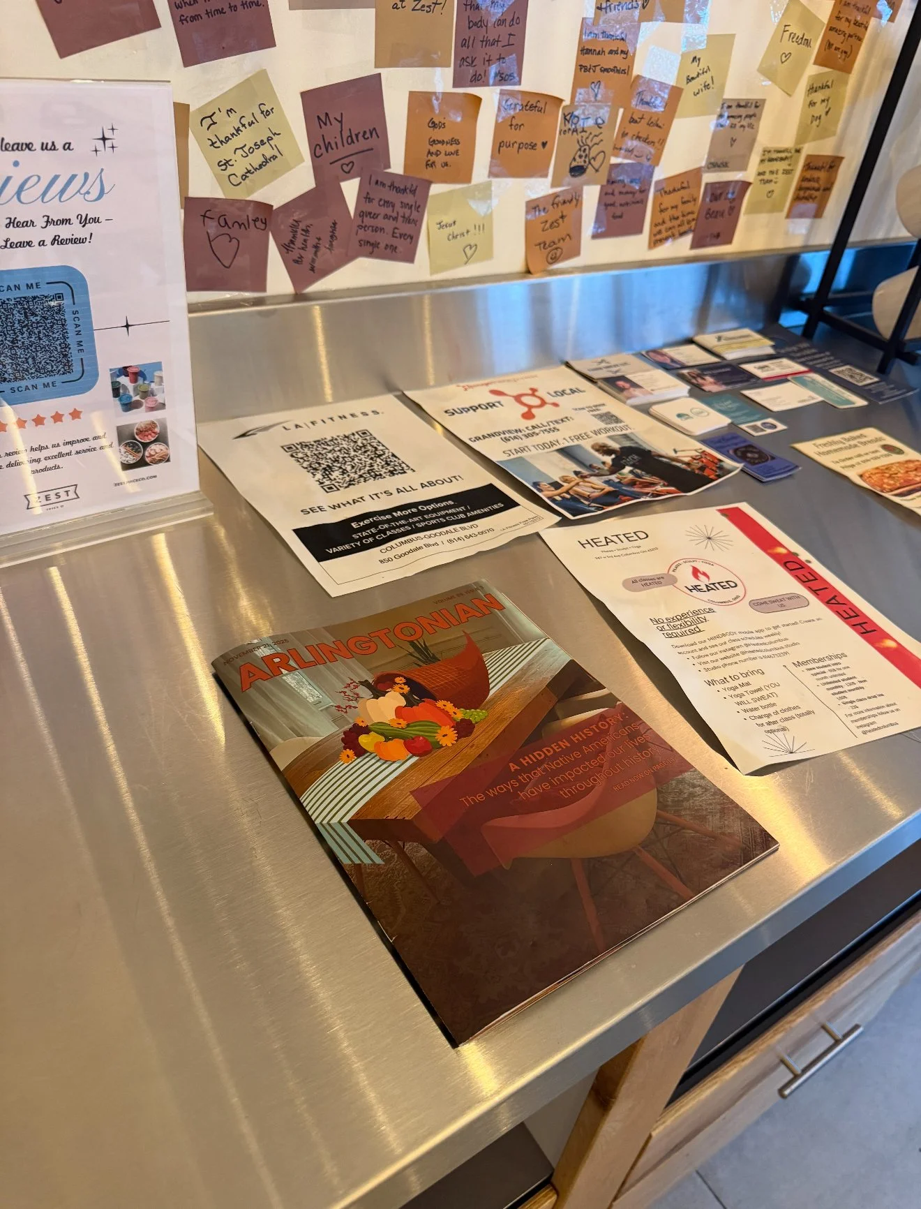 Arlingtonian issues displayed at Zest Juice, a local business who has an ad in each of our issues.